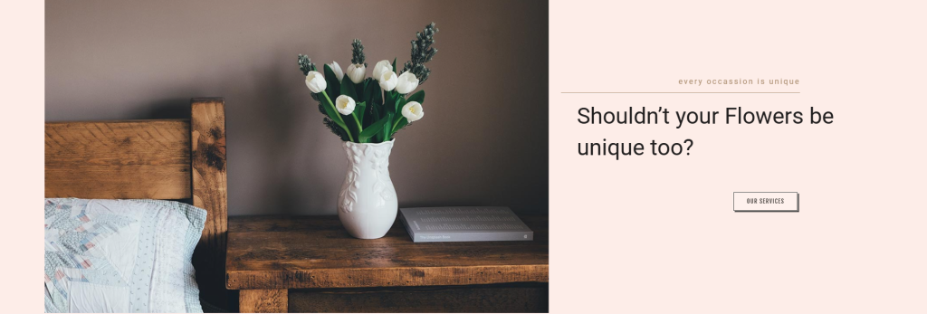 • طراحی مینیمال با استفاده از فضای سفید مناسب، تایپوگرافی خوانا و تصاویر عمیق از آرایش گل‌ها؛