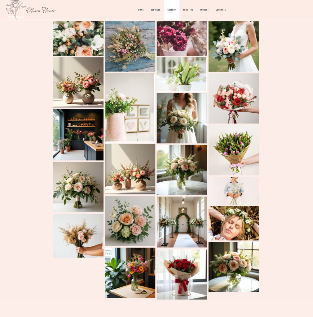 • بخش گالری قدرتمند که با نمایش نمونه‌کارهای واقعی برند، اعتماد مخاطب را جلب می‌کند و باعث ایجاد تمایز برند در بازار زیبایی و گل‌آرایی می‌شود.